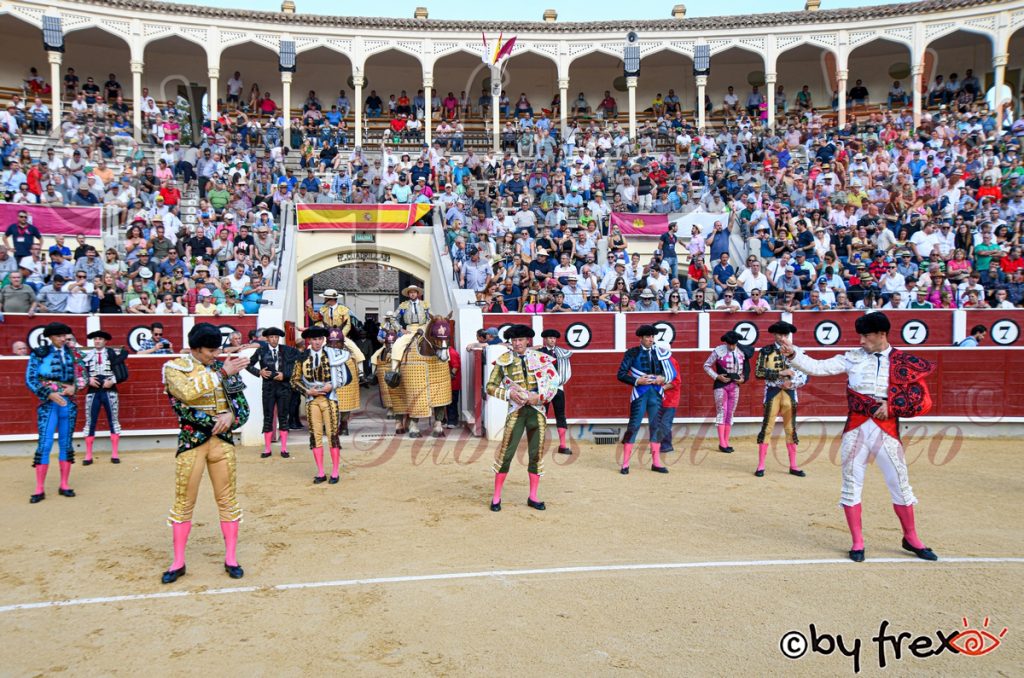 Incidencias: Al finalizar el paseíllo, sonaron los acordes del Himno Nacional de España y el público obligó a saludar una ovación a los dos toreros. Caco Ramos y Diego Valladar se desmonteraron tras parear al sexto