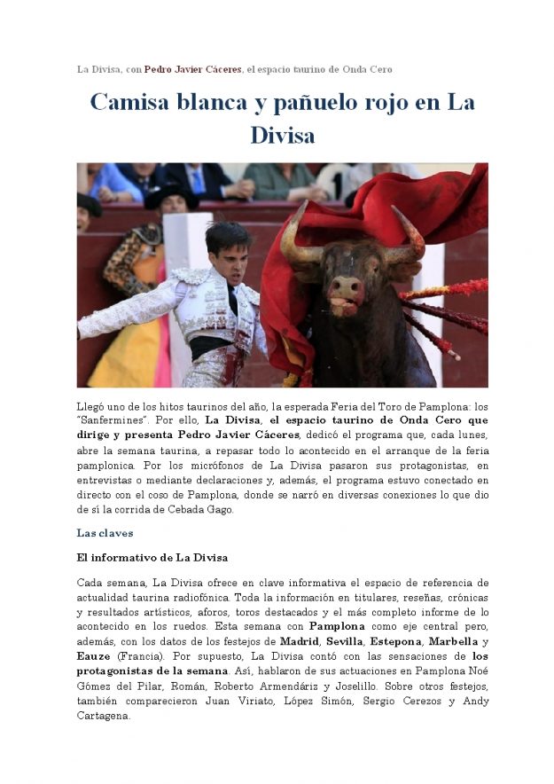 Camisa blanca y pañuelo rojo en La Divisa 2012, HemerotecaPor Claudia Starchevich18 julio, 2012 Informa Producción La Divisa