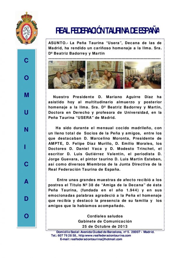 Remacha con motivo del Decimosexto Pregón Taurino