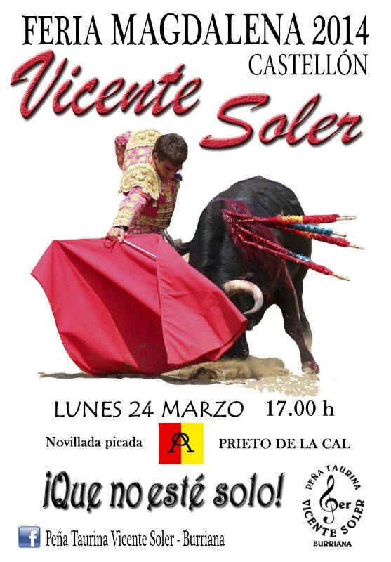 Vicente Soler en la Feria de la Magdalena – Castellón 2014 2014, HemerotecaPor Claudia Starchevich22 marzo, 2014 Informa Peña Taurina Vicente Soler