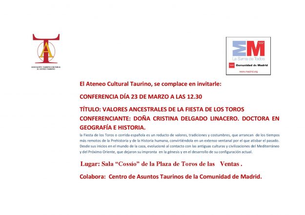 Ciclo de Conferencias Taurinas en el Ateneo Cultural Taurino de Madrid 2014, HemerotecaPor Claudia Starchevich22 marzo, 2014 Informa Pilar Guardiola Flores