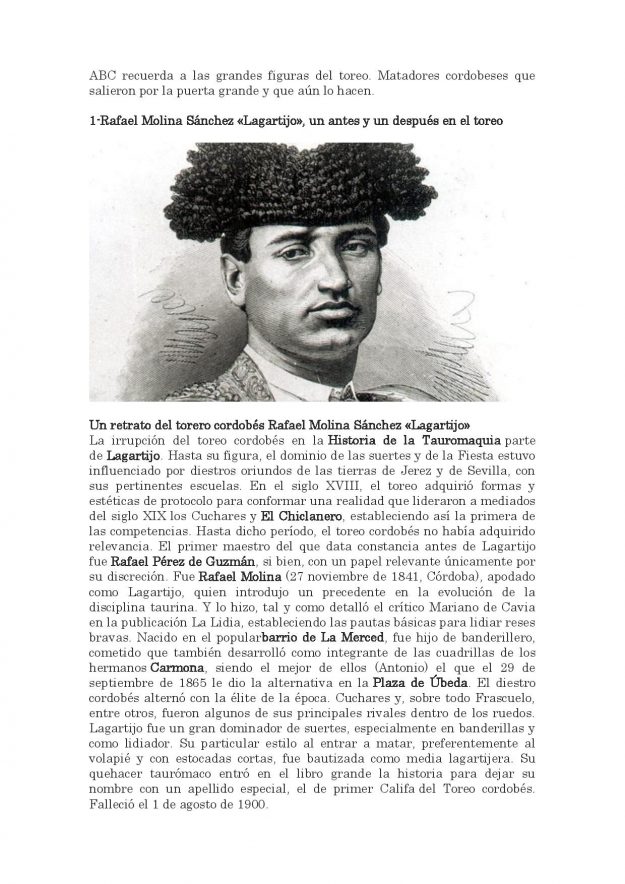 Diez toreros, diez nombres de la Historia de la Tauromaquia (1/5) 2015, HemerotecaPor Claudia Starchevich8 septiembre, 2015 Fuente: Diario ABC