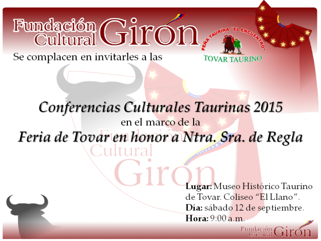 Conferencias Culturales Taurinas de la Fundación Cultural Girón en la Feria de Tovar 2015, HemerotecaPor Claudia Starchevich11 septiembre, 2015 Fuente: Fundación Cultural Girón (Venezuela)