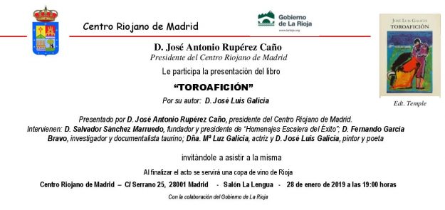 Presentación del libro «Toroafición» de José Luis Galicia Gonzalo – Escalera del Éxito 235 2019, HemerotecaPor Claudia Starchevich18 enero, 2019