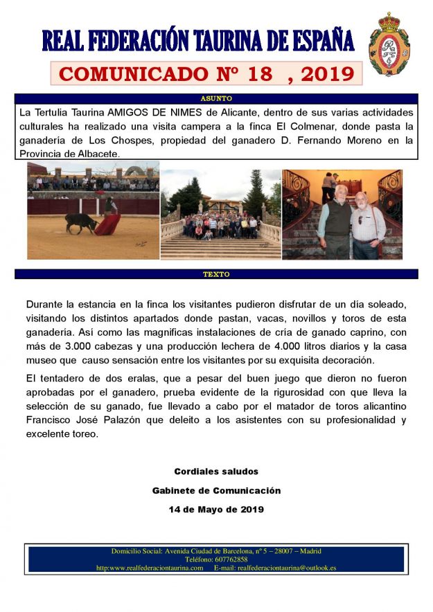Jornada celebrada en la Tertulia Taurina Amigos de Nimes de Alicante – Para + info haz clic👆 🇪🇸 2019, HemerotecaPor Claudia Starchevich18 mayo, 2019