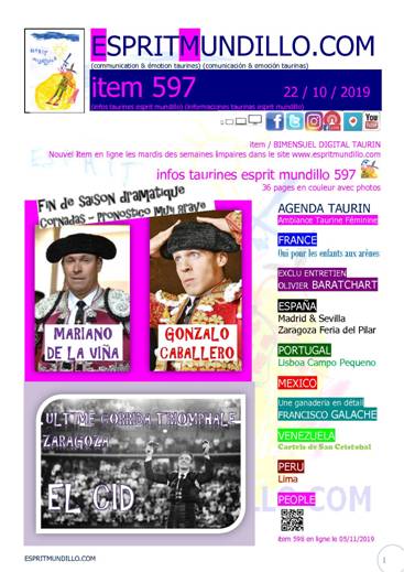 NOUVEAU infos taurines esprit mundillo 597 en ligne / Bimensuel digital taurin gratuit / 22 / 10 / 2019 – Para + info haz clic👆 🇪🇸 2019, HemerotecaPor Claudia Starchevich3 noviembre, 2019 http://www.espritmundillo.com