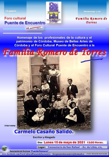 Como es costumbre desde hace doce años, los cordobeses, representados por la dirección y técnicos del Museo de Bellas Artes, así como el Foro Cultural Puente de Encuentro, tuvo lugar un acto en el mausoleo familiar. COMIENZA LA DISERTACIÓN Presentó el acto José María Palencia, Asesor Técnico de Conservación e Investigación del Museo, quien dio…