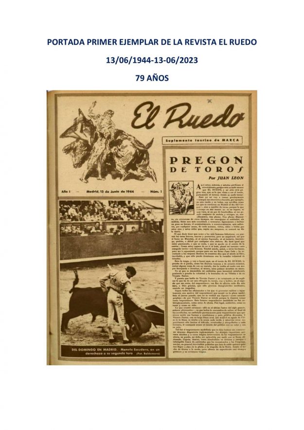 Portada primer ejemplar de la Revista «El Ruedo» – Para + info haz clic👆 🇪🇸 2023, HemerotecaPor Claudia Starchevich23 julio, 2023