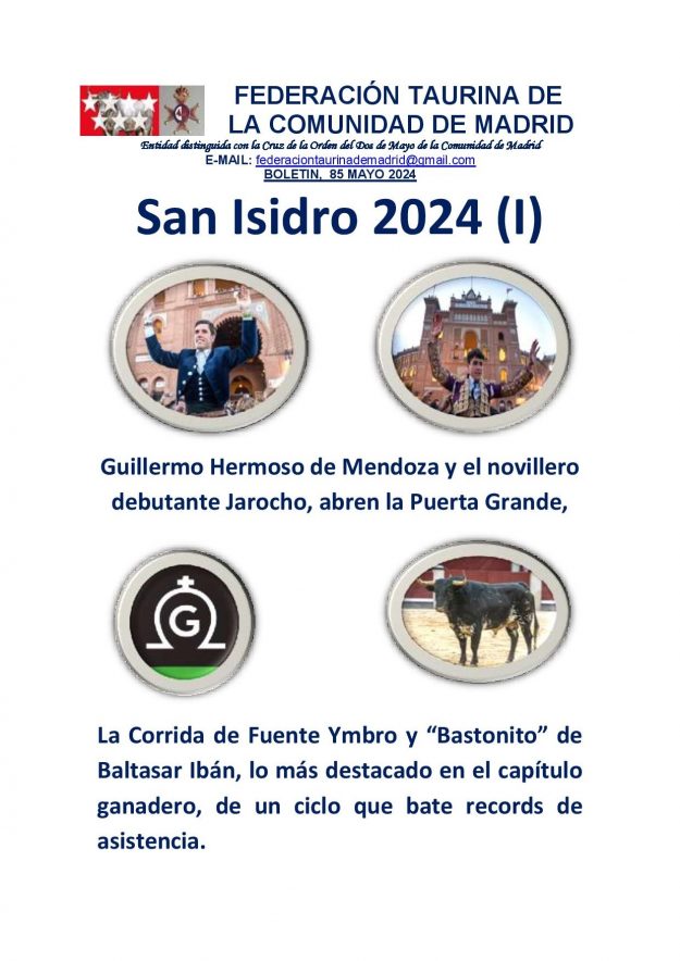 BOLETÍN Nº 85 MAYO 2024 DE LA FEDERACION TAURINA DE LA COMUNIDAD DE MADRID – Para + info haz clic👆 🇪🇸 HemerotecaPor Claudia Starchevich31 mayo, 2024
