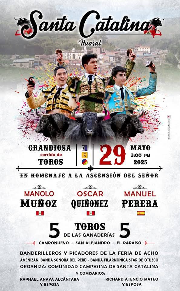La pintoresca comunidad andina de Santa Catalina, enclavada en la sierra limeña, se prepara para una jornada taurina de gran expectación con el anuncio de su grandiosa corrida de toros en honor a la Ascensión del Señor programada para el 29 de mayo de 2025, la cual contará con la participación del matador de toros…