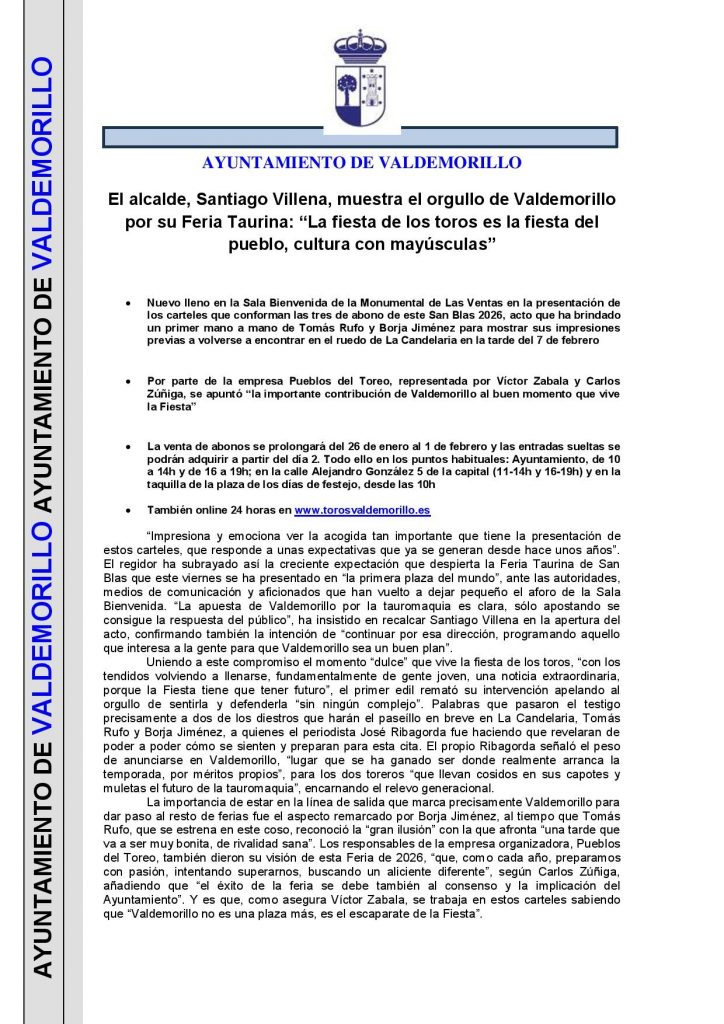 Ayuntamiento de Valdemorillo – Para + info haz clic👆 🇪🇸 HemerotecaPor Claudia Starchevich5 febrero, 2026