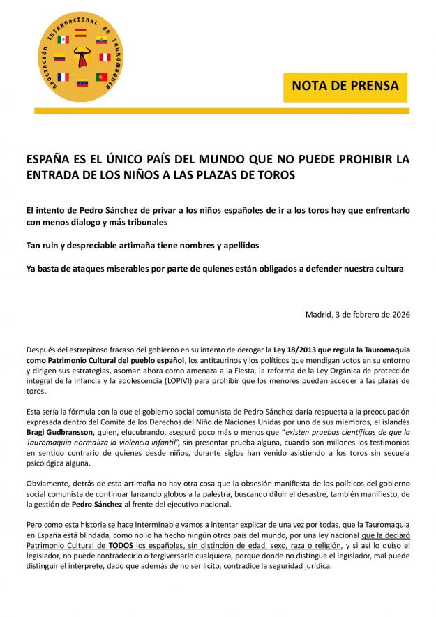 Asistencia de menores a los toros – Para + info haz clic👆 🇪🇸 HemerotecaPor Claudia Starchevich5 febrero, 2026