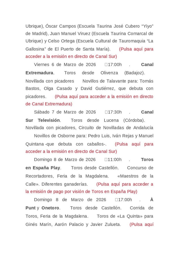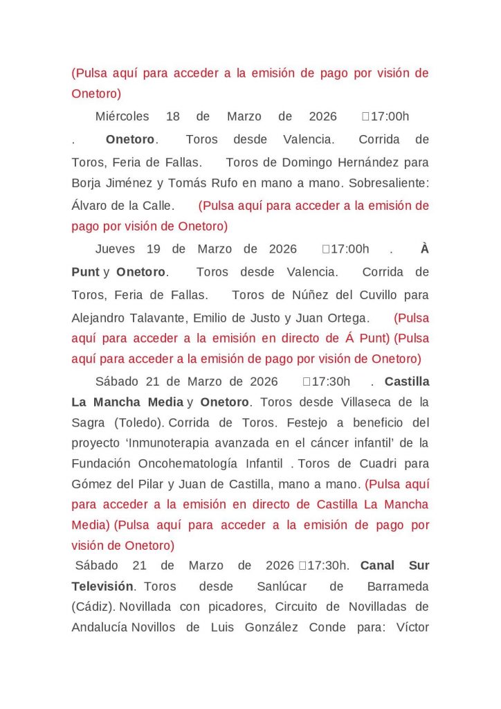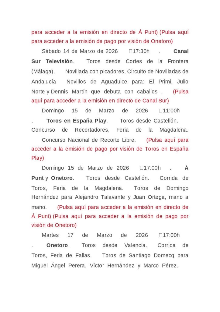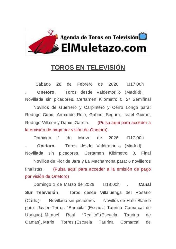 AGENDA DE TOROS EN TELEVISIÓN – Para + info haz clic👆 🇪🇸 HemerotecaPor Claudia Starchevich13 marzo, 2026