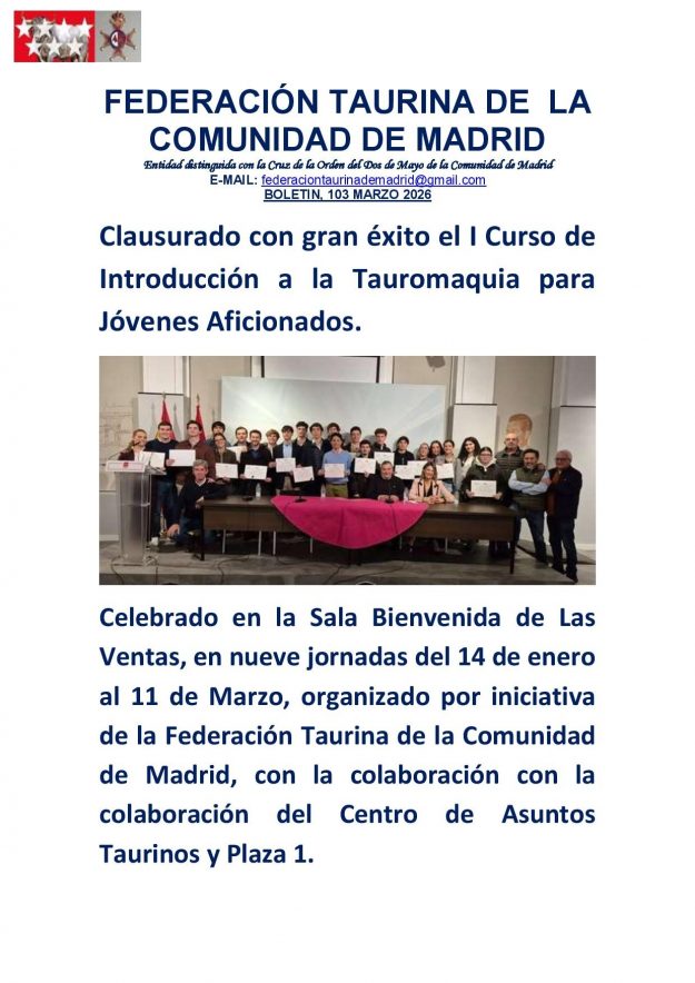 BOLETÍN Nº 103 DE LA FEDERACIÓN TAURINA DE LA COMUNIDAD DE MADRID – Para + info haz clic👆 🇪🇸 HemerotecaPor Claudia Starchevich2 abril, 2026