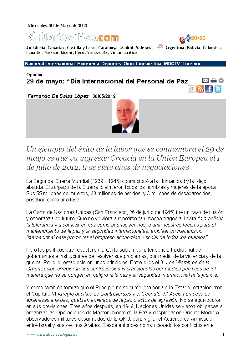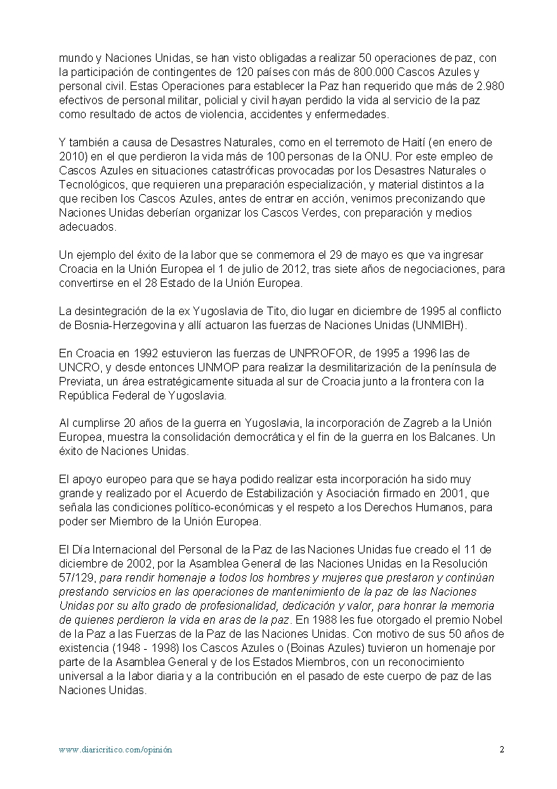 29 de mayo: Dia Internacional del Personal de Paz