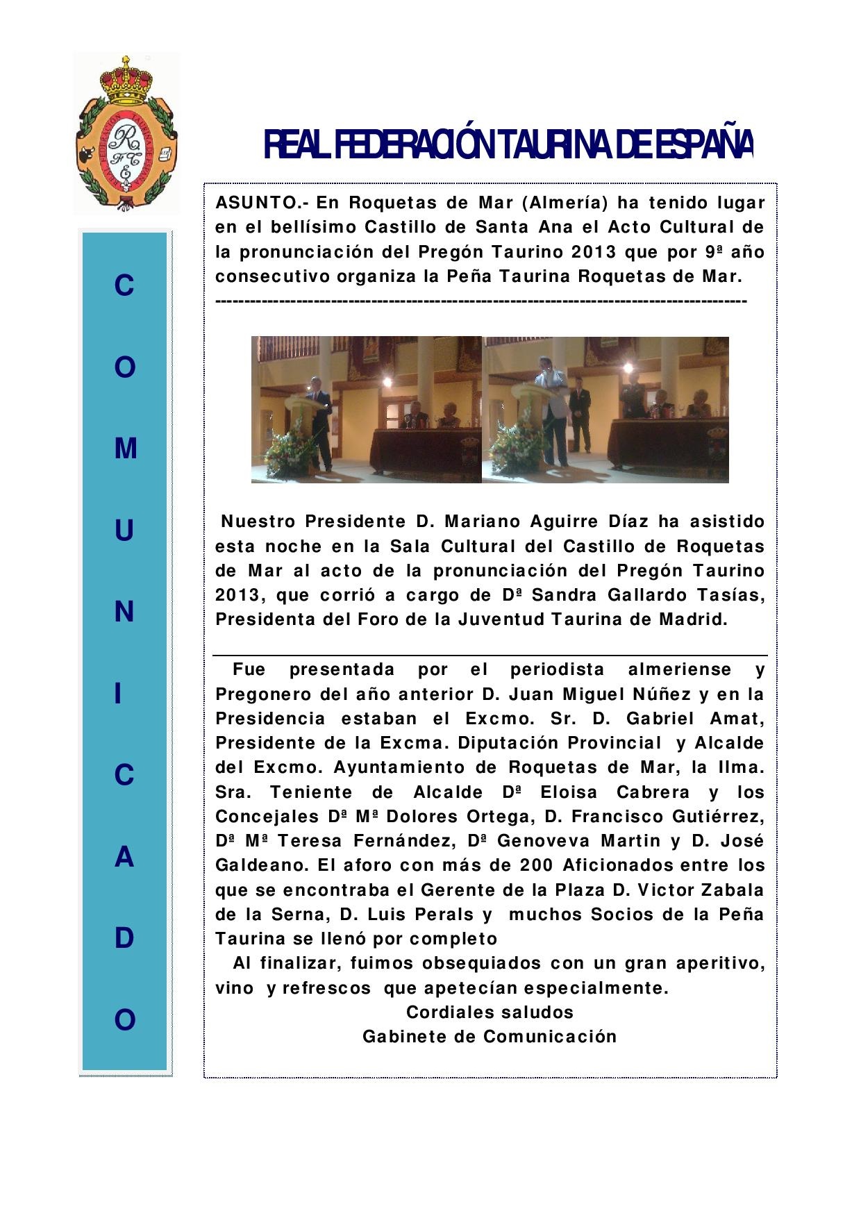 9º Pregon Taurino Peña Taurina Roquetas de Roquetas de Mar (Almería)