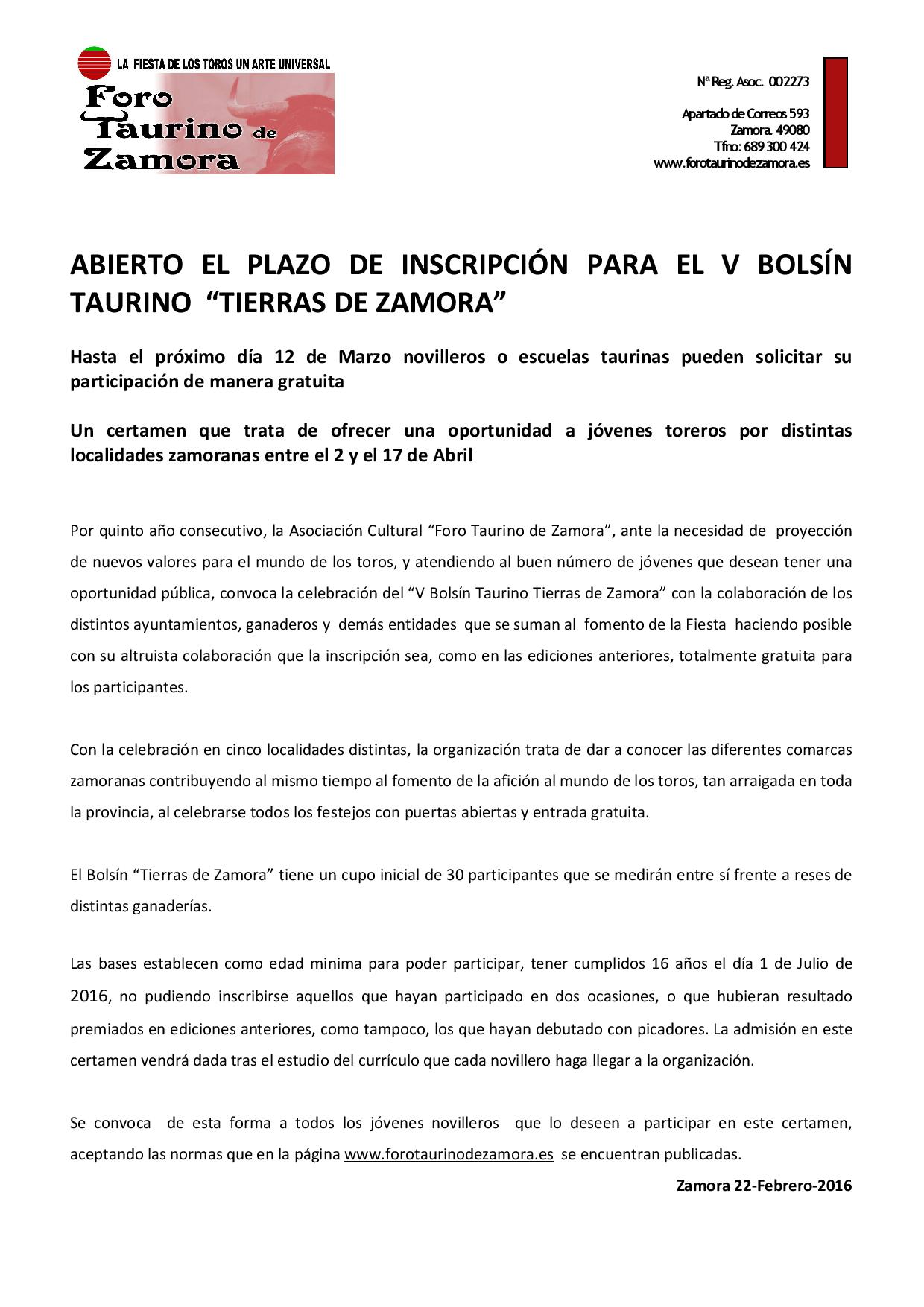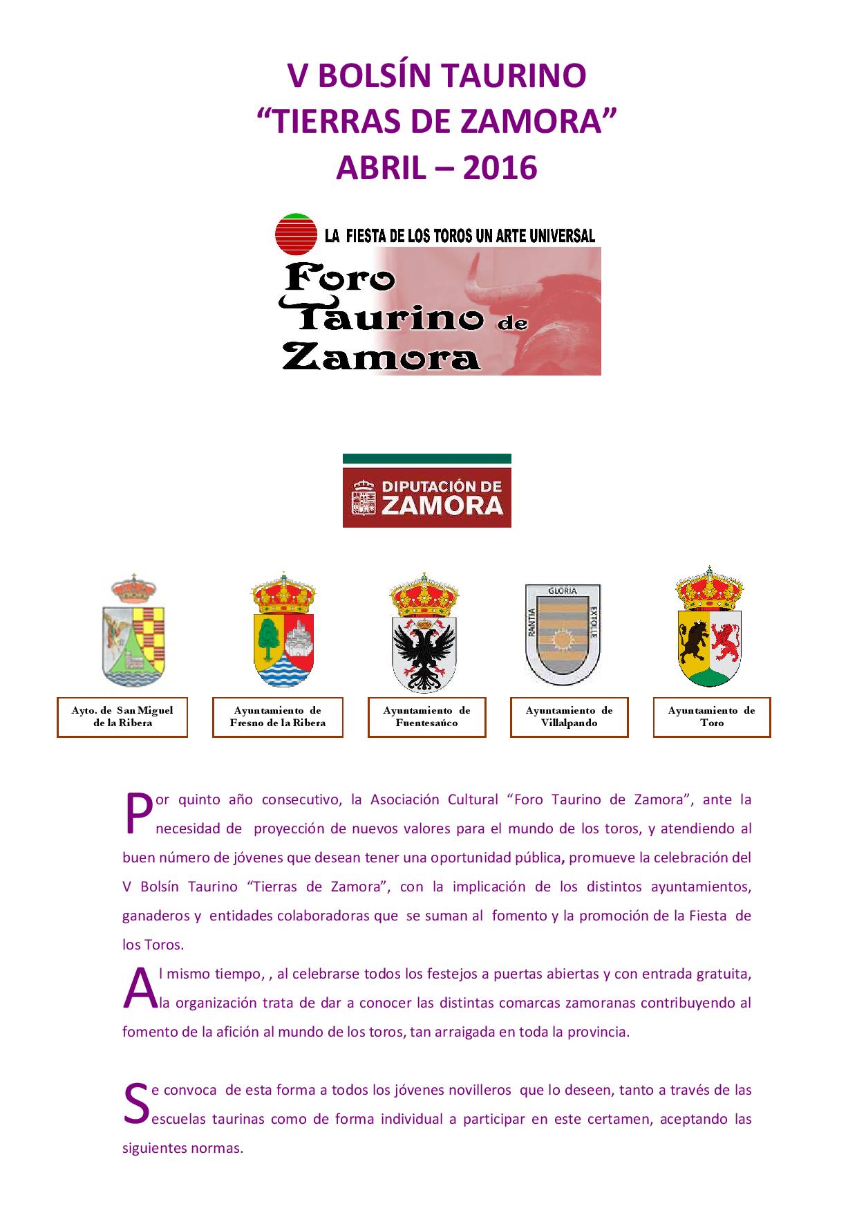 Abierto el plazo de inscripción para el V Bolsín Taurino `Tierras de Zamora´