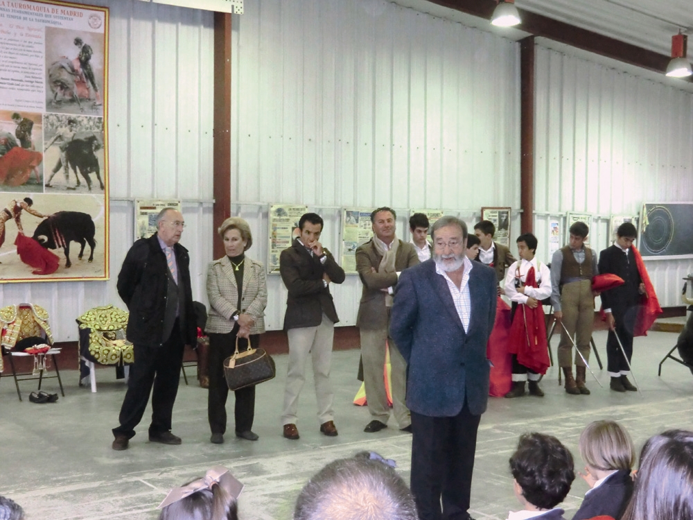 En las instalaciones municipales de la Escuela de Tauromaquia de Madrid se ha celebrado la I JORNADA INFANTIL TAURINA, organizada por la Asociación de Abonados Taurinos de la Plaza de Toros de Las Ventas “ABOVENT”. El acto fue presidido por la Concejala Presidenta del Distrito de Arganzuela y Vocal del Patronato de la Escuela de Tauromaquia de Madrid, doña Carmen Rodríguez Flores acompañada del presidente de ABOVENT, don Francisco Serrano. Al mismo asistieron más de 50 niños de entre 2 y 16 años, acompañados de padres y familiares, que con gran atención escucharon las explicaciones que, sobre el arte de torear, les impartieron los matadores de toros invitados, José Luis Bote y José Pedro Prados «El Fundi», antiguos alumnos de la Escuela. Especial relevancia tuvo la participación de los niños que se familiarizaron con el ritual taurino, los trajes de luces y camperos, y que practicaron lances con capotes y muletas.