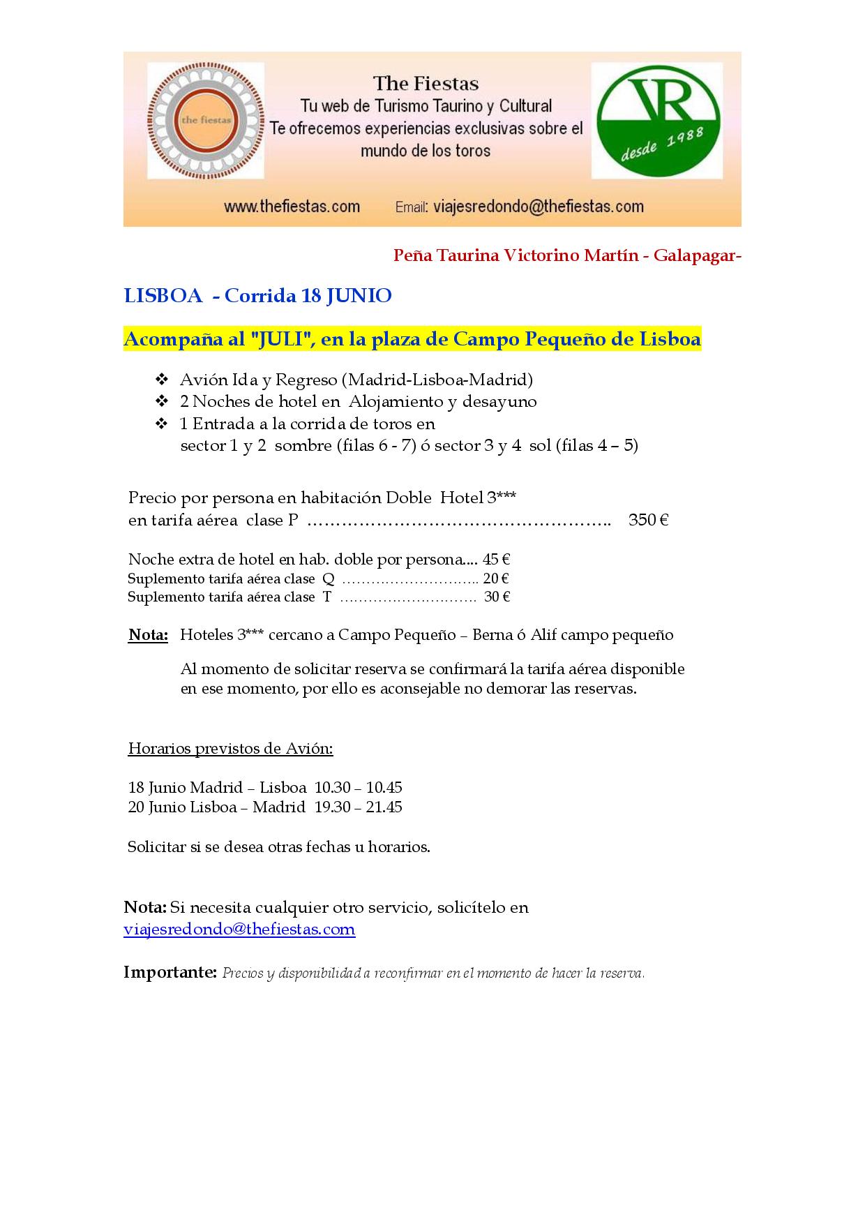 Acompaña al `Juli´ en la plaza de Campo Pequeño de Lisboa