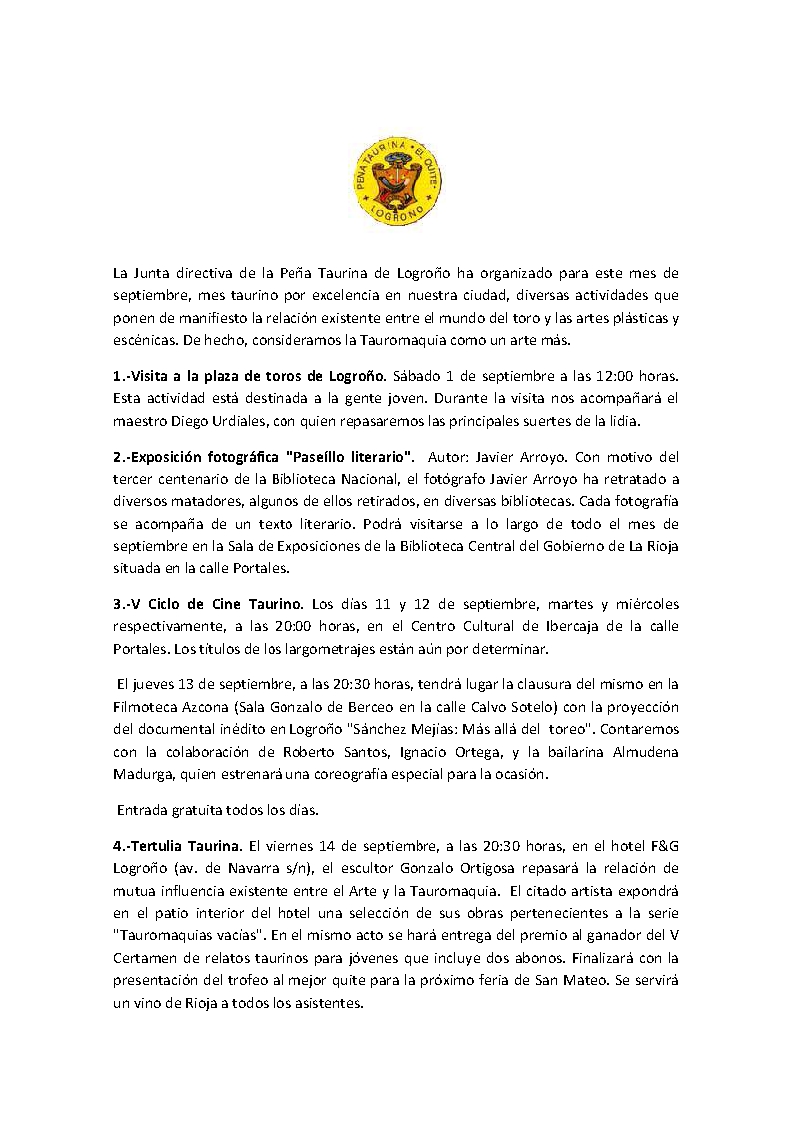 Actividades en el Club Taurino de Murcia y la Peña Taurina El Quite de Logroño