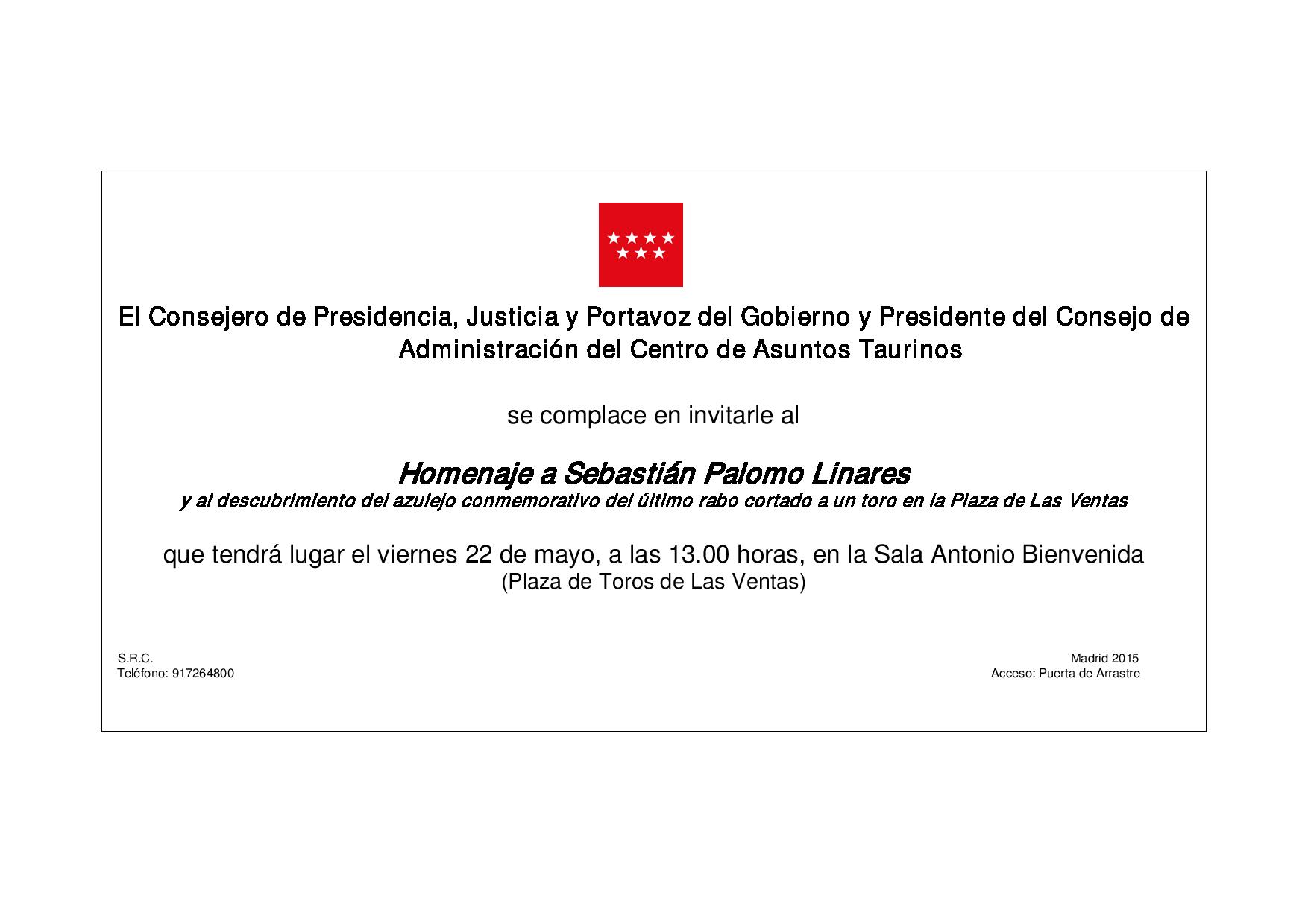Acto homenaje al torero Sebastián Palomo Linares – Escalera del Éxito nº 28