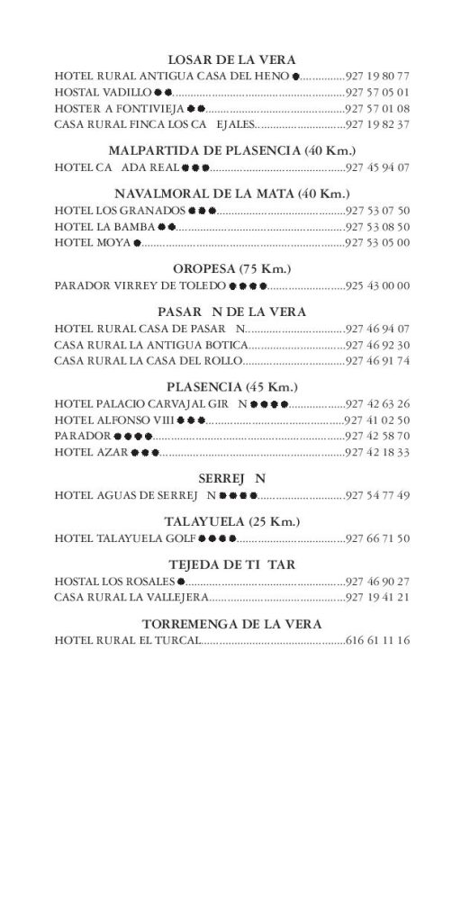 Adjunto se envía relación de hoteles de esta zona, para que puedan hacer directamente las reservas de alojamiento.
