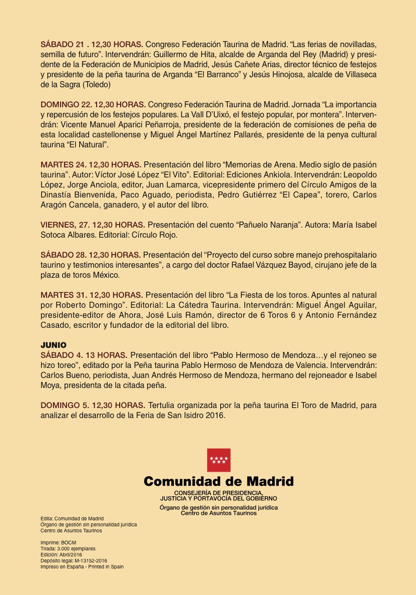 Actos culturales 2016 en Plaza de Toros de Las Ventas