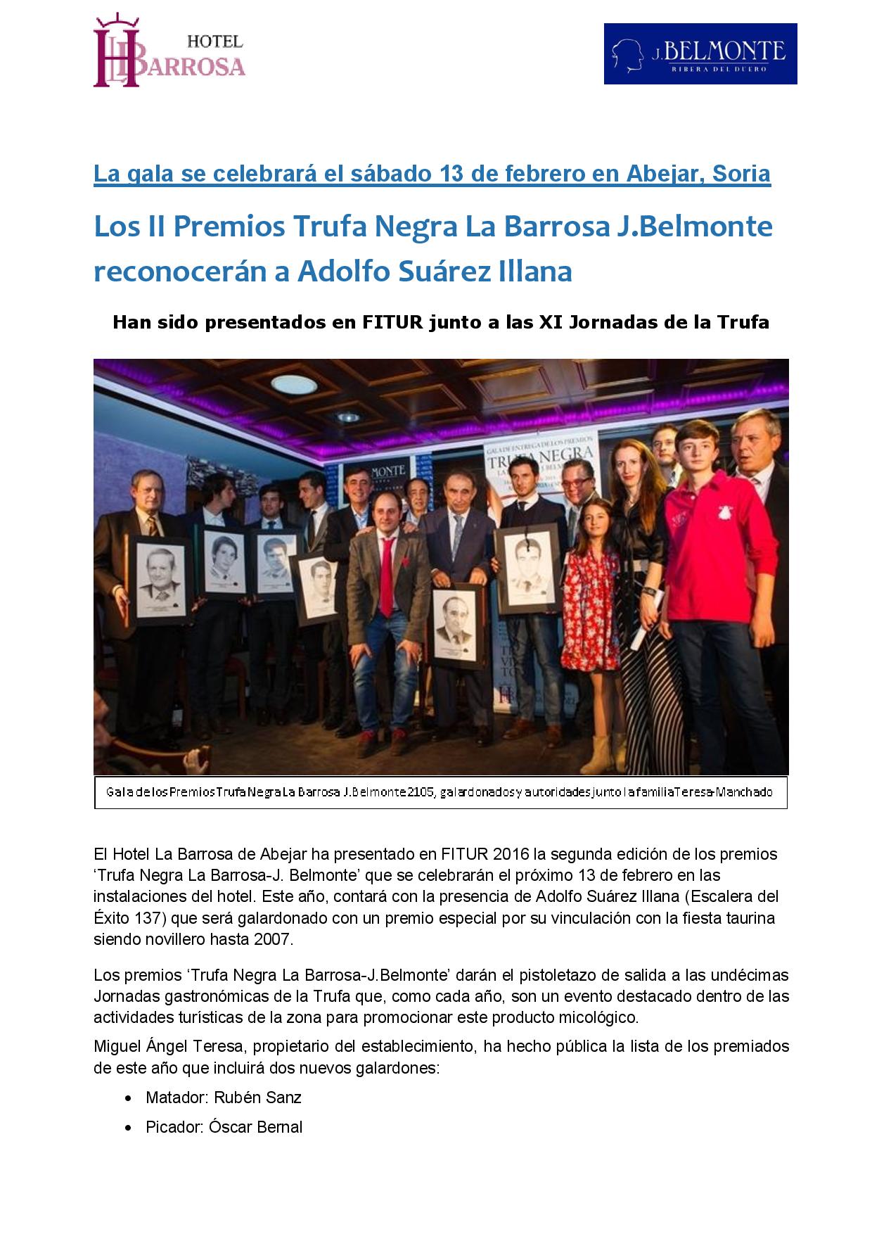 Adolfo Suarez Illana (Escalera del Éxito 137) recibirá el Premio Taurino La Barrosa J. Belmonte