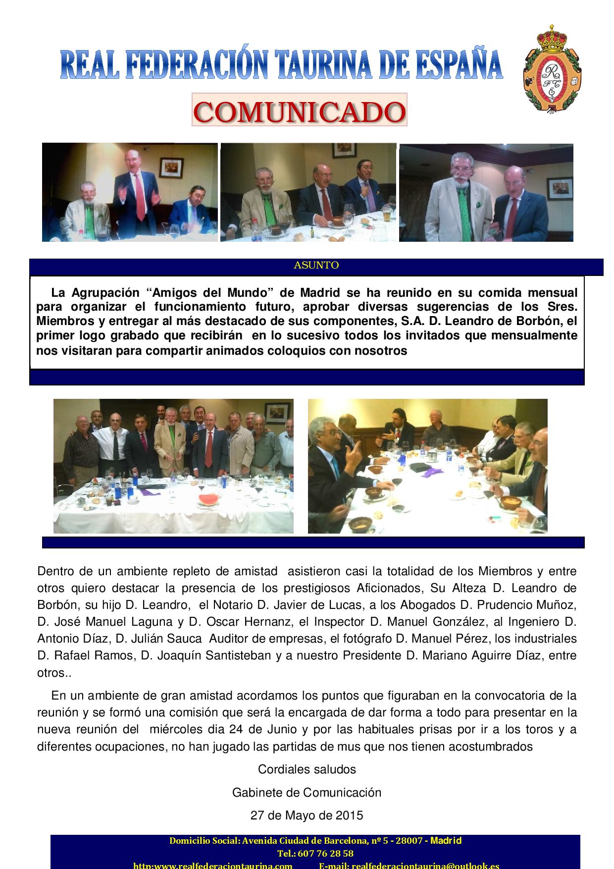 Agrupación `Amigos del Mundo´ de Madrid rindió homenaje a S.A. D. Leandro de Borbón