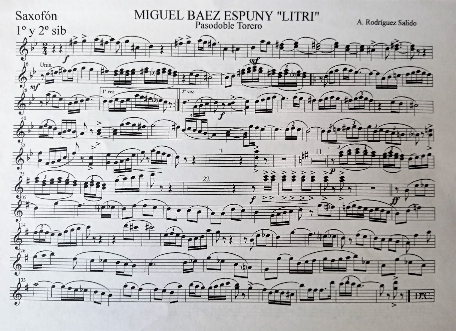 Partichela de Saxos 1 y 2. Pasodoble dedicado a Miguel Báez Espuny «Litri».
