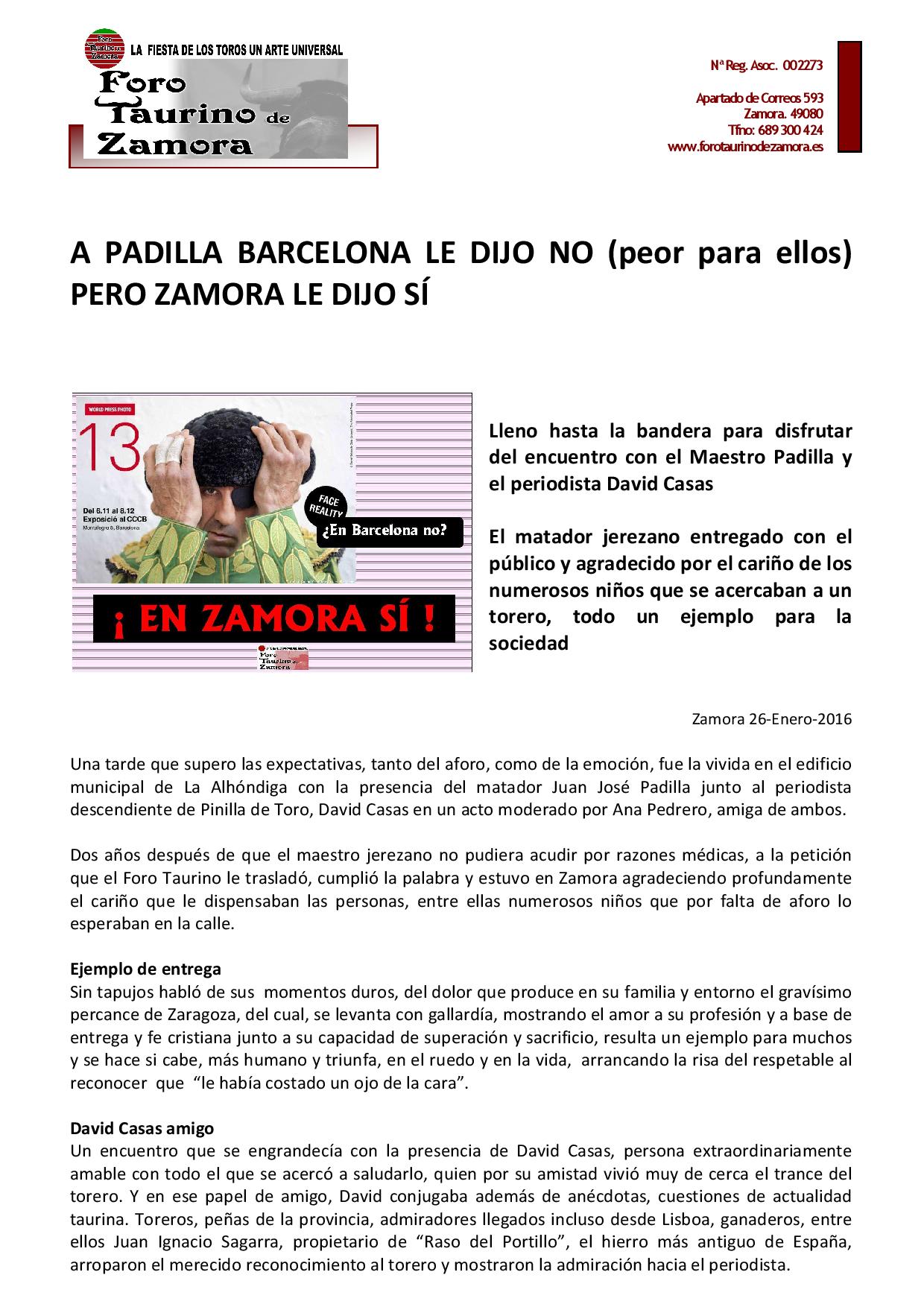 Al Maestro Padilla en Barcelona le dijeron no, pero Zamora le dijo SÍ