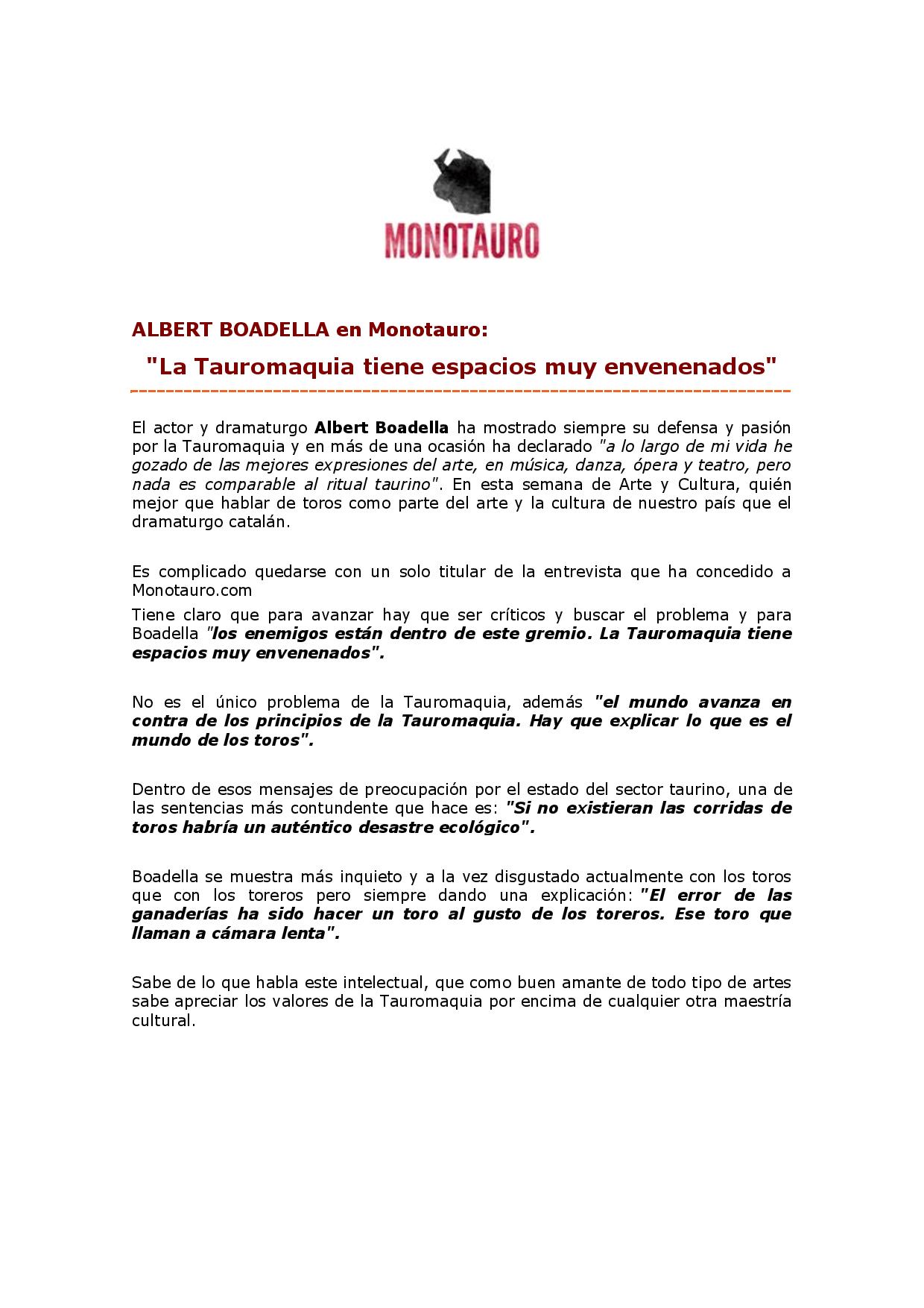 Albert Boadella: La Tauromaquia tiene espacios muy envenenados