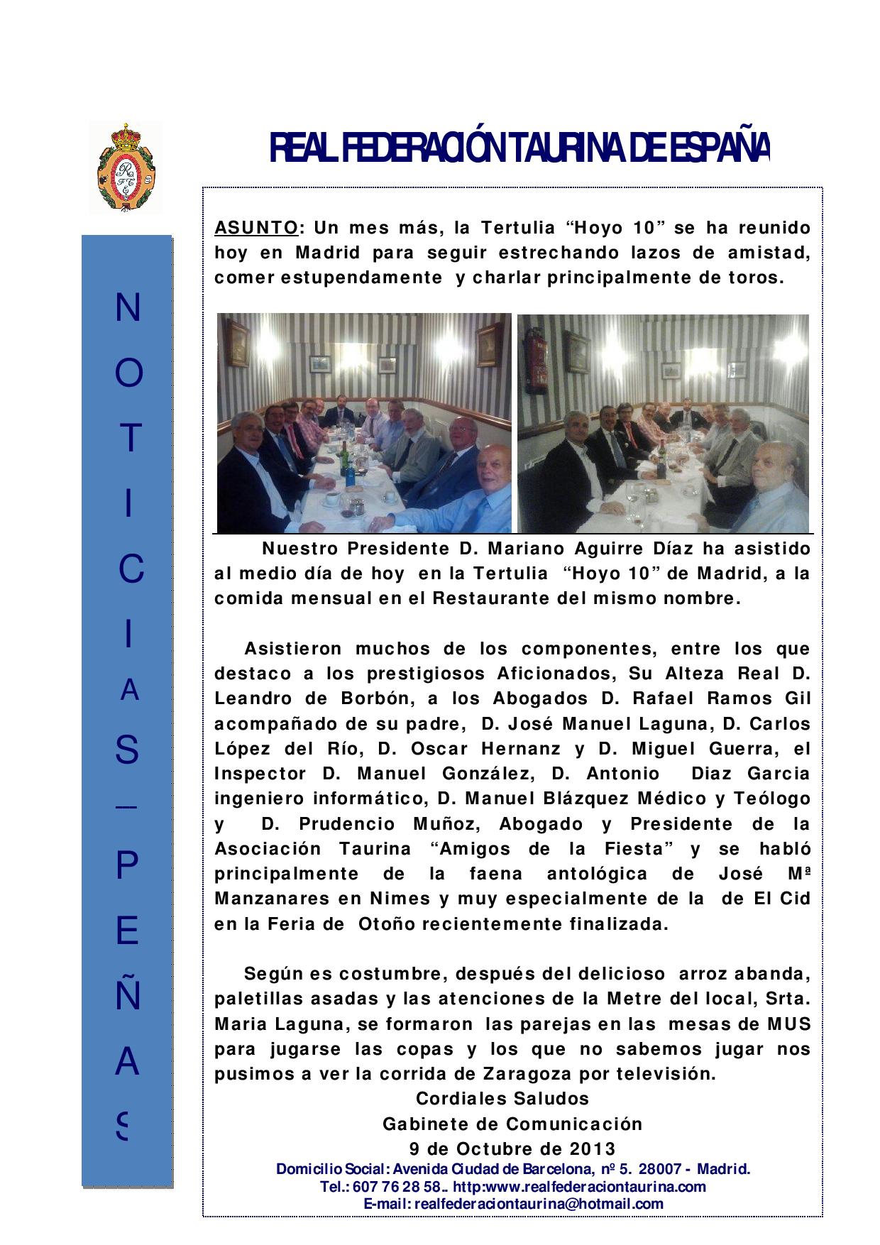 Almuerzo mensual con la Tertulia Hoyo 10