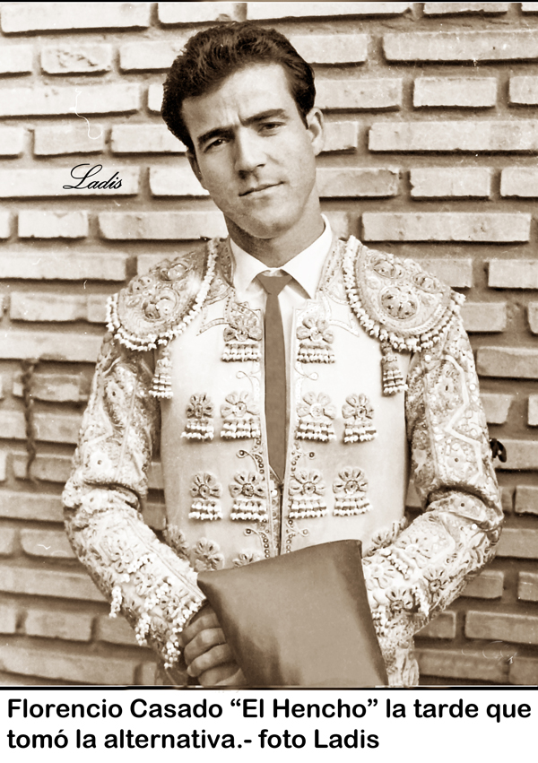 Florencio Casado «El Hencho» tomó la alternativa en la plaza de toros de «Los Califas» el 1 de junio de 1969. Por tanto se cumple este año el cincuenta aniversario de aquella efemérides. Esa tarde, con un cartel netamente cordobés, Gabriel de la Haba «Zurito», con Fernando Tortosa de testigo, doctoró al nuevo matador cediéndole el toro «Idiota» de la ganadería de Gerardo Ortega, marcado con el número 98, negro zaíno y de 499 kilos de peso. El balance de su actuación fue de oreja y dos orejas y rabo. «El Hencho» conquistó, en esa edición de la feria, el preciado Trofeo Municipal «Manolete».