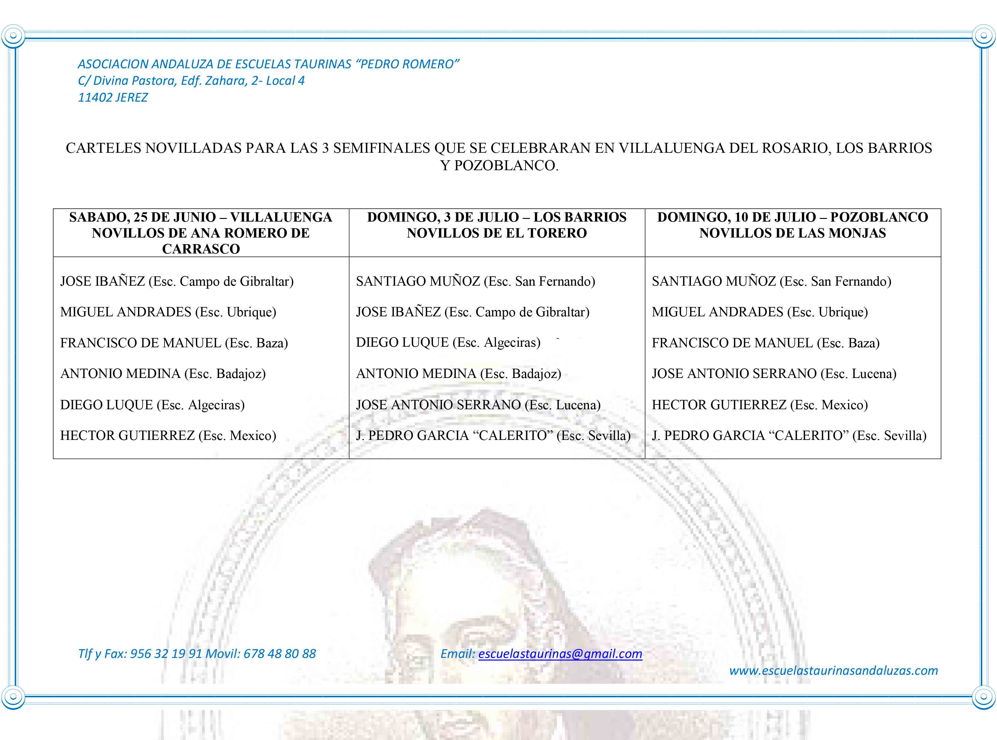 Alumnos clasificados para semifinales en el XXII Ciclo de novilladas de AAET