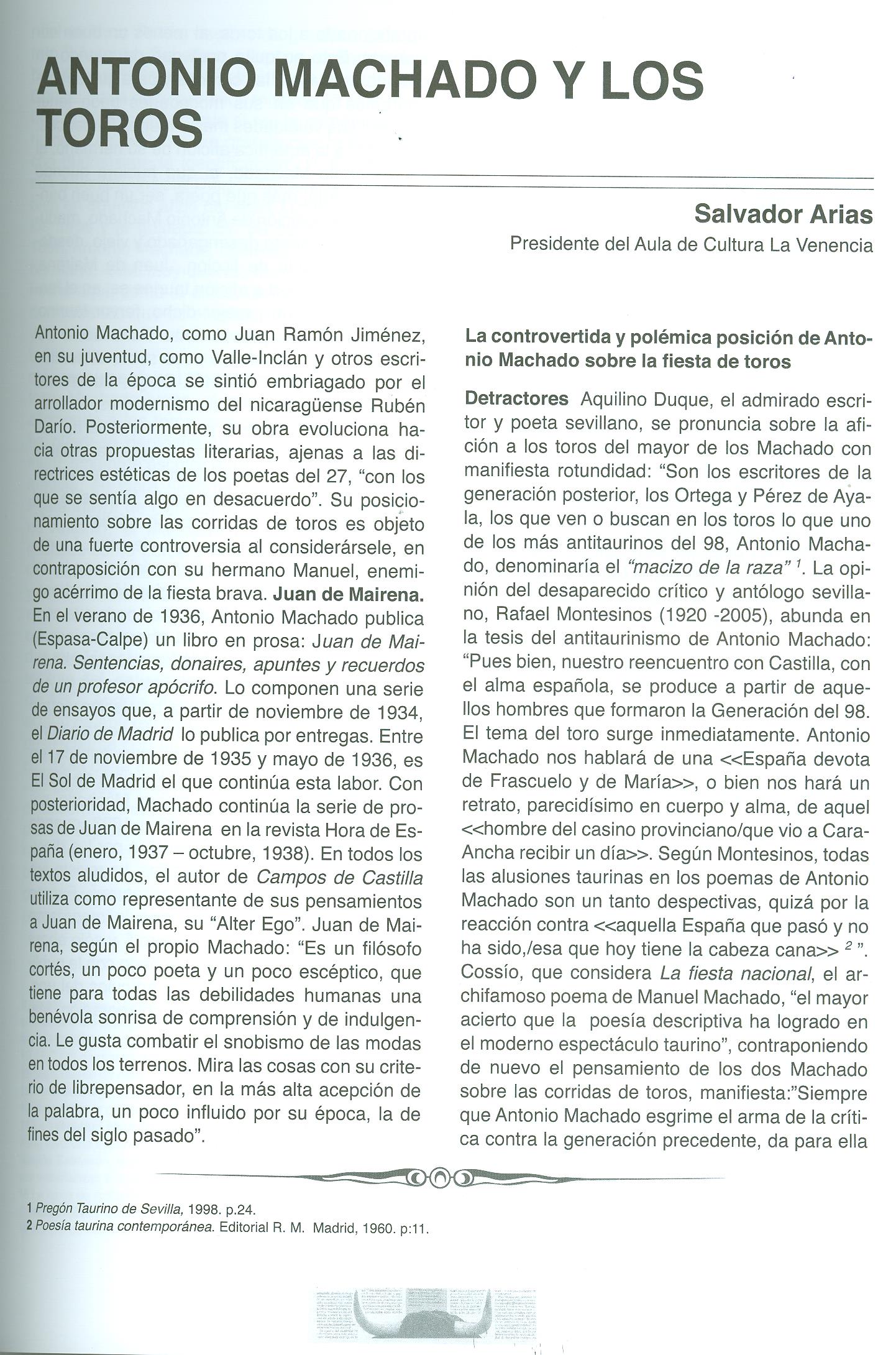 Antonio Machado y los toros (1/2)