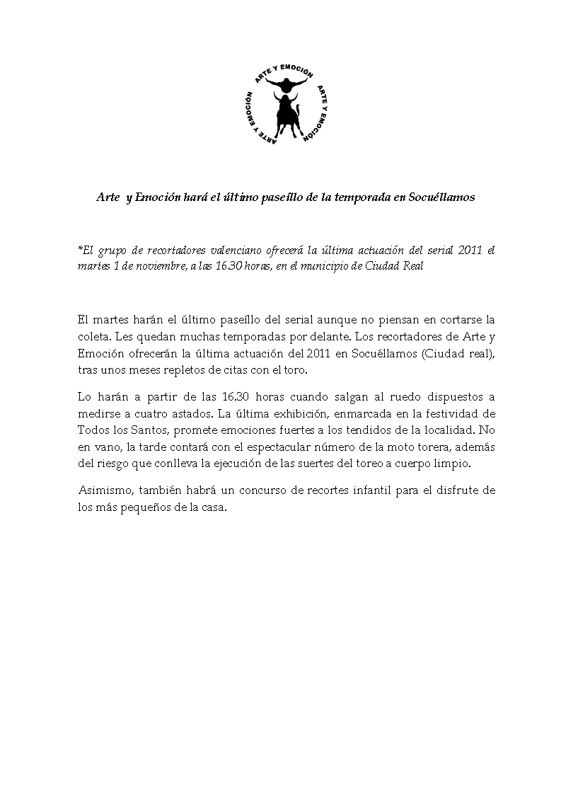 Arte y Emoción hará el último paseíllo de la temporada en Socuéllamos