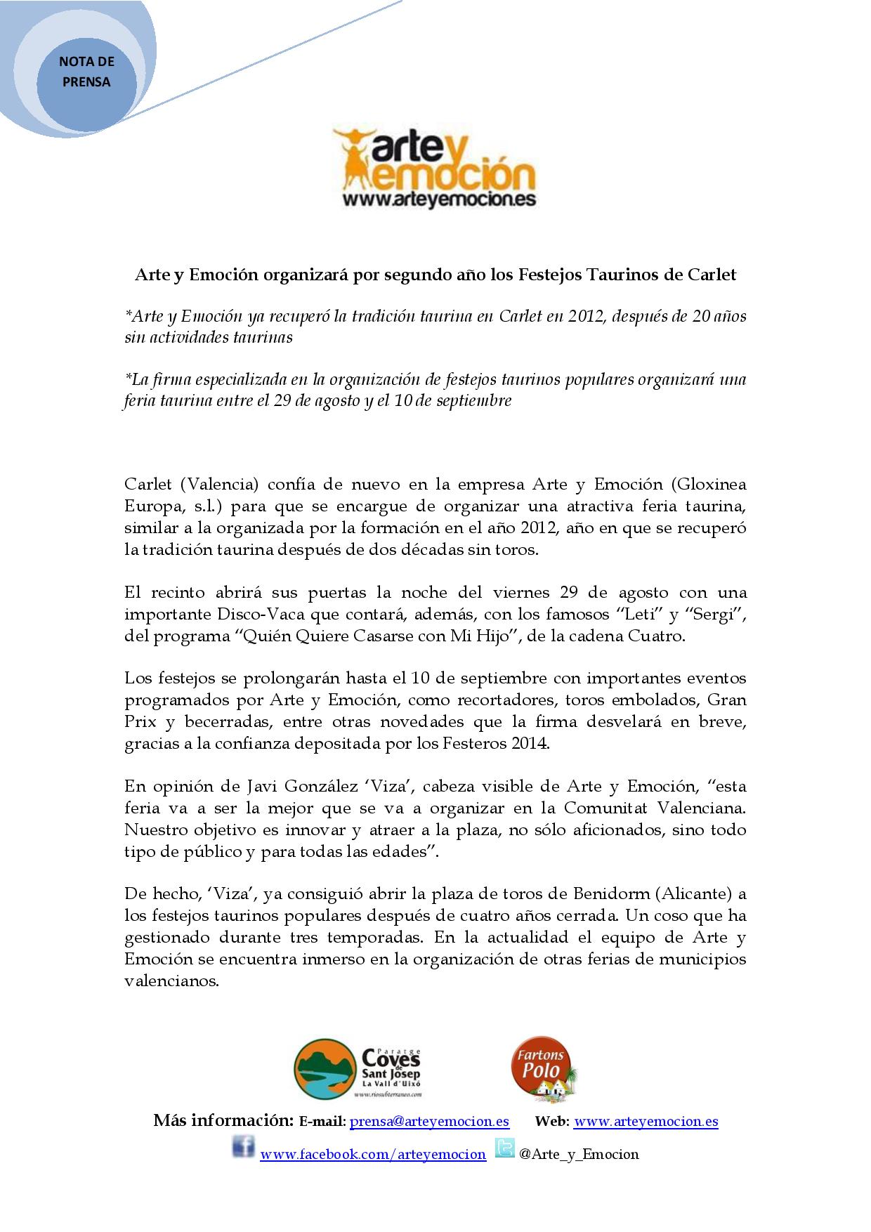 Arte y Emoción organizará por segundo año los Festejos Taurinos de Carlet