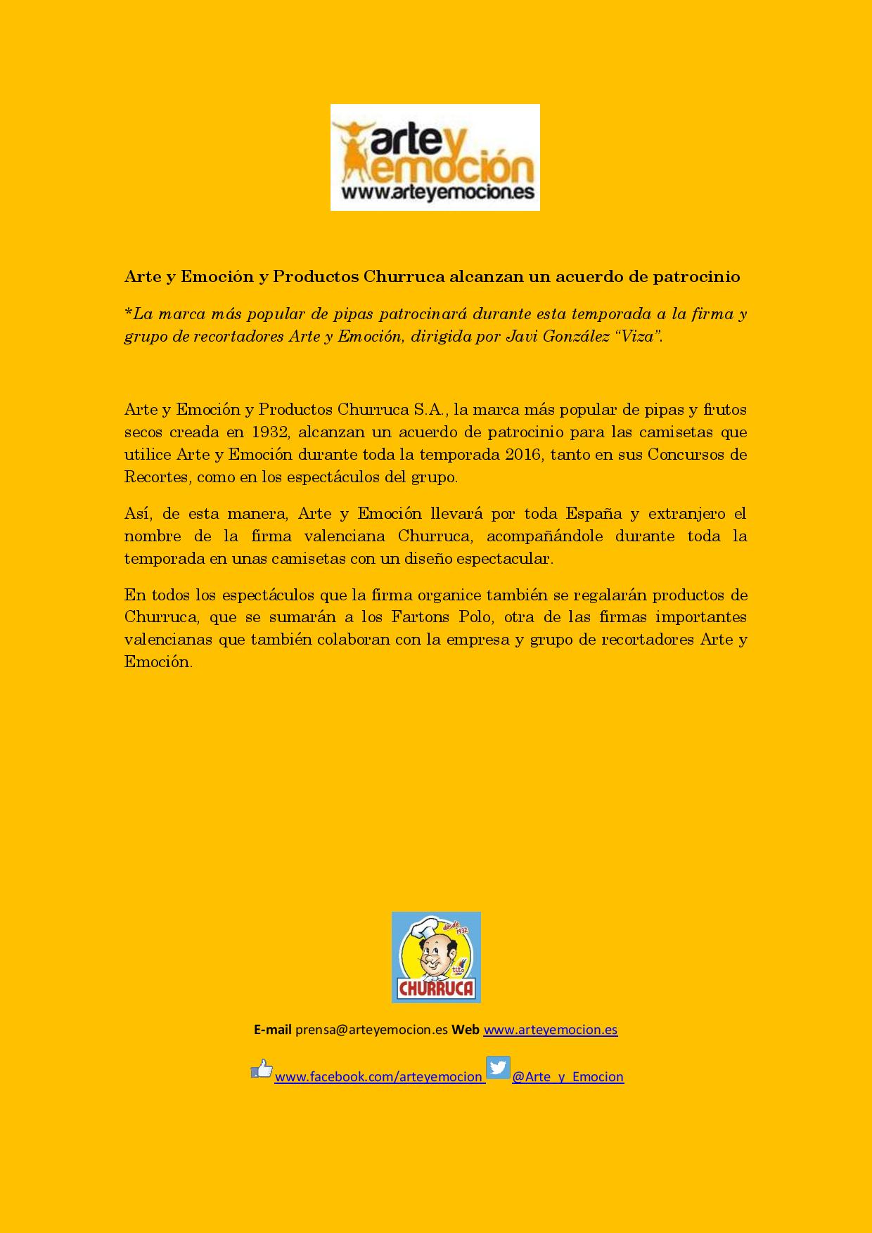 Arte y Emoción y Productos Churruca alcanzan un acuerdo de patrocinio