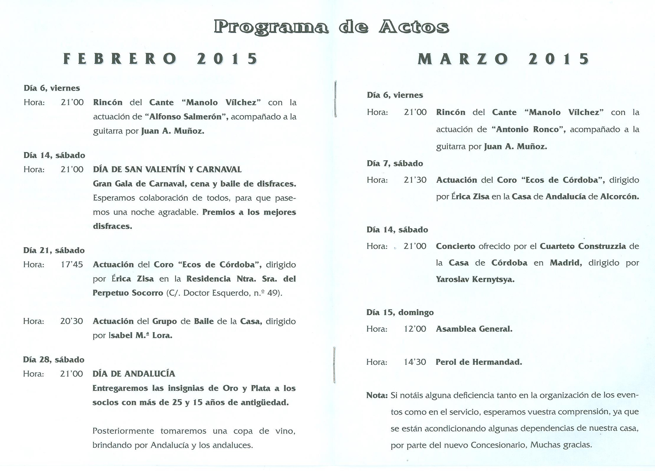 Asociación Andaluza Casa de Córdoba en Madrid. Programas de Actos del día de Andalucía 2015