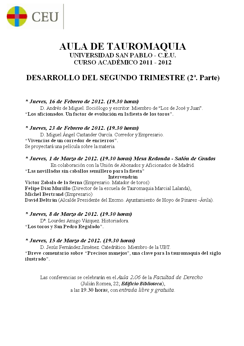Aula de Tauromaquia en la Universidad San Pablo CEU