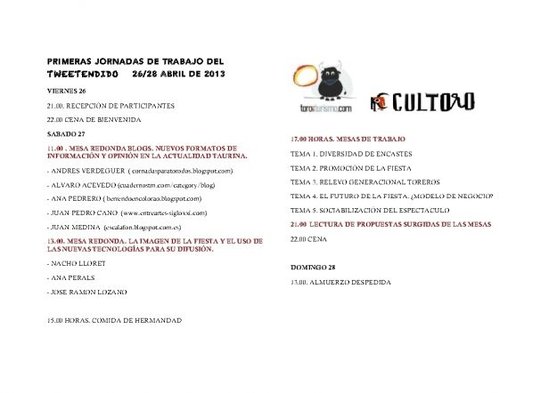Primeras Jornadas de Trabajo del Tweetendido 2013, HemerotecaPor Claudia Starchevich24 abril, 2013 Informa Toroturismo