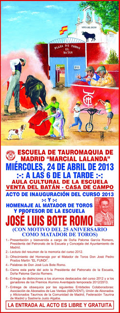 Homenaje al matador de toros José Luis Bote Romo en la Escuela Marcial Lalanda 2013, HemerotecaPor Claudia Starchevich24 abril, 2013 Informa José Julio García. Decano de la crítica taurina