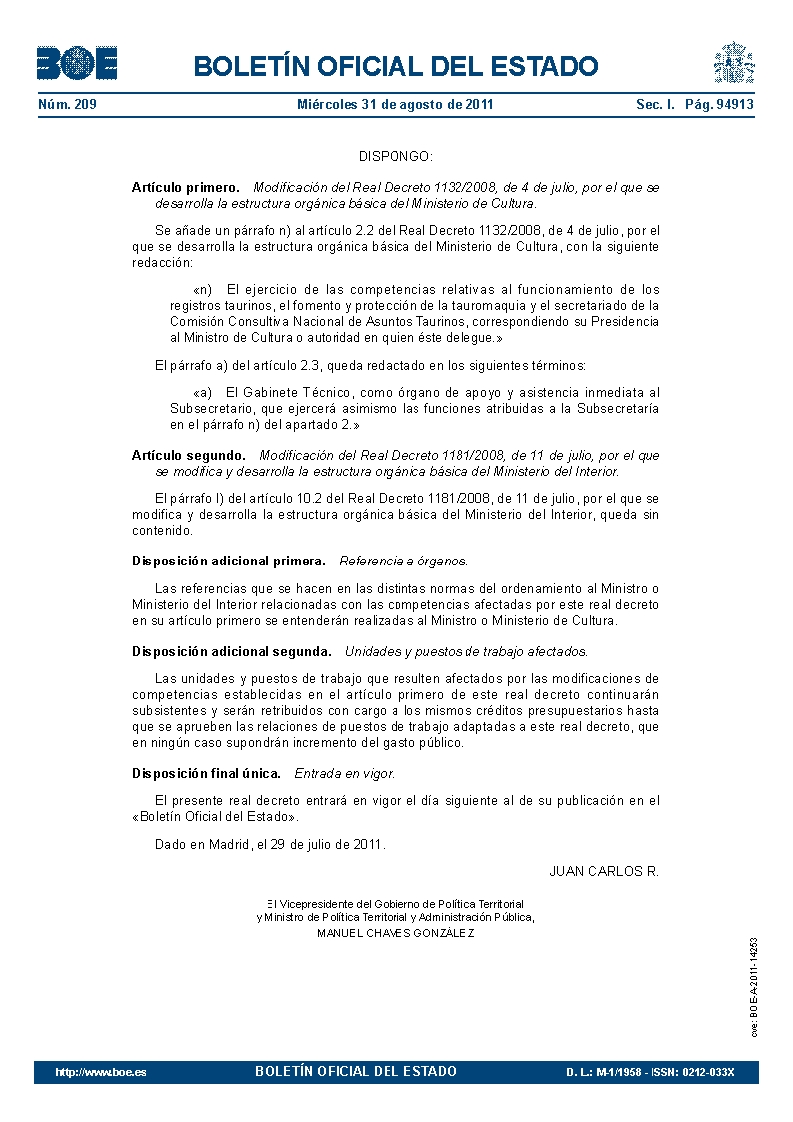 B.O.E traspaso de la Fiesta al Ministerio de Cultura
