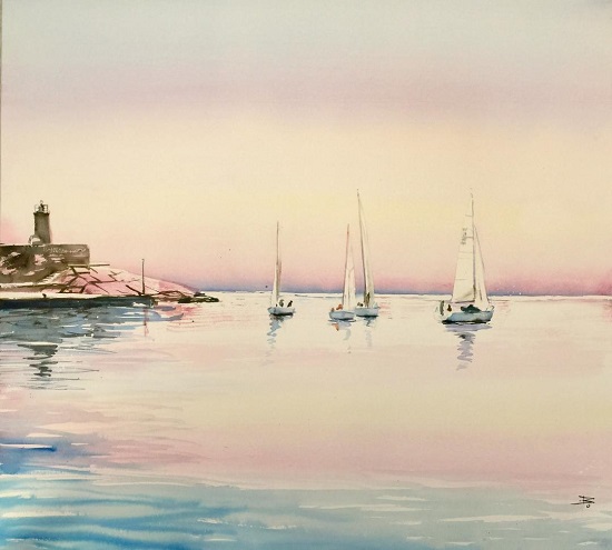 ESCUELA DE VELA, acuarela sobre papel, 74×80 cm
