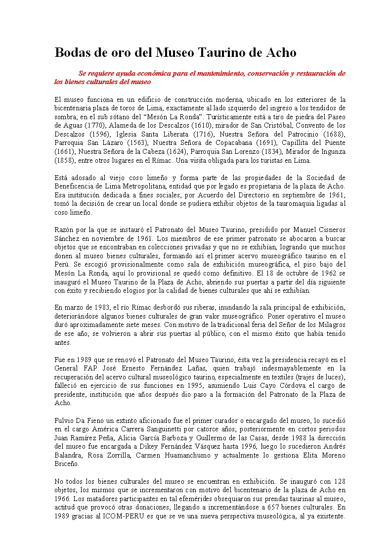 Bodas de oro del Museo Taurino de Acho