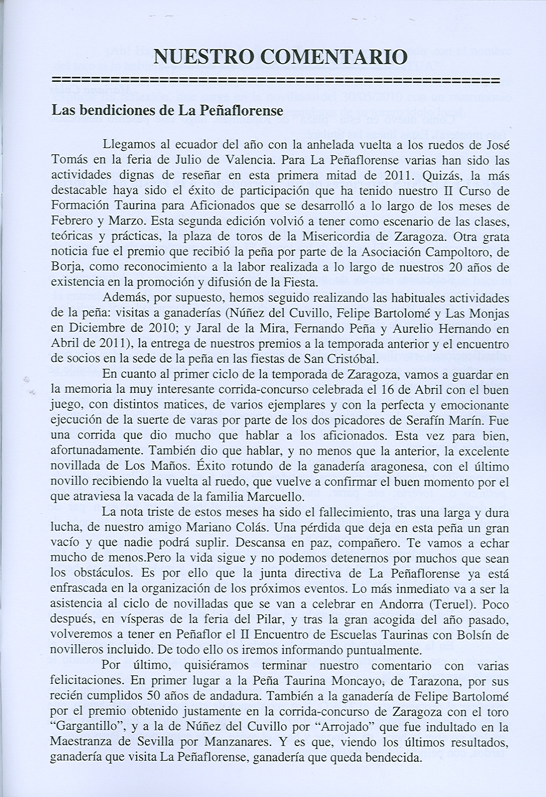 Boletín informativo de la Peña Taurina Peñaflorense «Ripamilán»