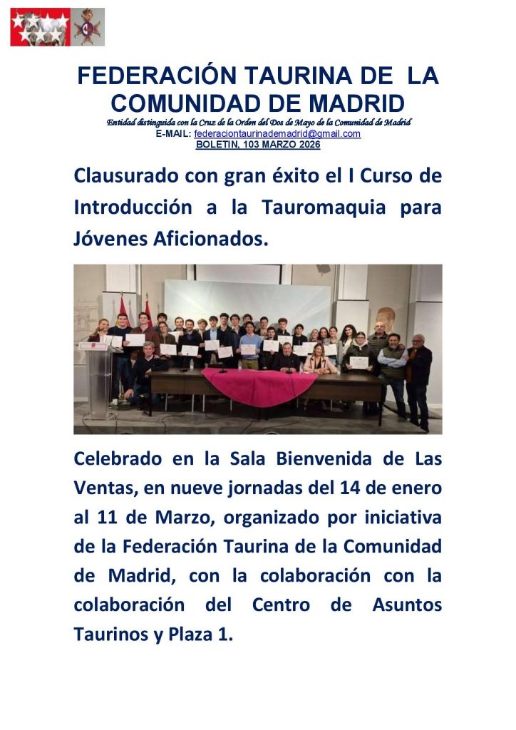 BOLETÍN Nº 103 DE LA FEDERACIÓN TAURINA DE LA COMUNIDAD DE MADRID – Para + info haz clic👆 🇪🇸