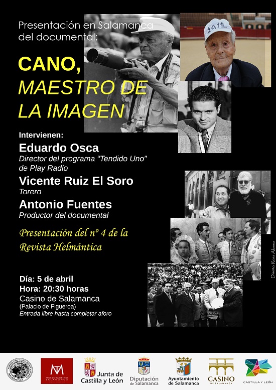En el mismo acto se proyectará el documental » Cano, maestro de la imagen» que recorre la vida del popular fotógrafo valenciano, para ello contaremos con la presencia del productor del documental Antonio Fuentes, del torero Vicente Ruiz El Soro y del crítico taurino Eduardo Osca, que analizaran la trayectoria de Francisco Cano Lorenza «Cano»