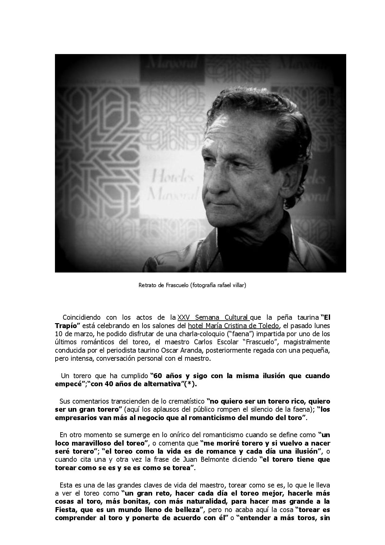 Carlos Escolar Frascuelo: Un romántico del toreo